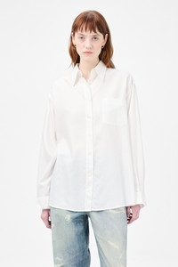Details · Portuguese fabric · 100% Tencel · Mother of pearl buttons · Single chest patch pocket · Curved hem · Mitered cuffs · Wrap side seams · Relaxed, slightly shaped fit · W4252PS Description Our Precious Shirt in Static White Liquid Oxford. Produced in Portuguese tencel fabric, the women's Precious Shirt has a relaxed, slightly shaped fit and features mother of pearl buttons, a single chest patch pocket, curved hem, darts in the back for shape, mitered cuffs and wrap side seams.