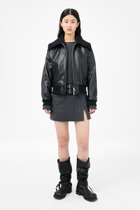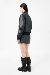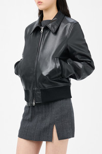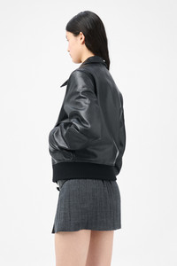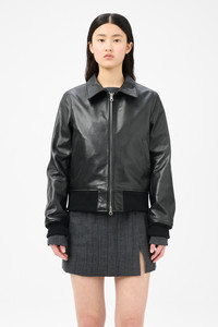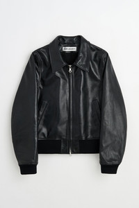 Details · Italian leather · Fully lined · Detachable rib collar · Lampo two-way zip · Welt pockets · Ribbed cuffs and hem · Inside welt pocket · Metal OUR LEGACY bean rivet · Sleek, shaped fit · W2259CM Description Our Radar Bomber in Malleable Black Bull Hide. Produced in an Italian bull leather, the women's Radar Bomber has a sleek and shaped fit and features a detachable rib collar that attaches to inner collar stand, a cotton and viscose lining, ribbed cuffs and hem, a welt pocket on the inside placket and two front welt pockets with hidden snap closure. This product is crafted from carefully sourced leather. As a natural material, leather carries subtle traces of the animal's life. These natural imperfections bring a unique character to each product, expressing an original and authentic look. The product shall be shaped by its wearer and naturally distress over time to complete the design process.