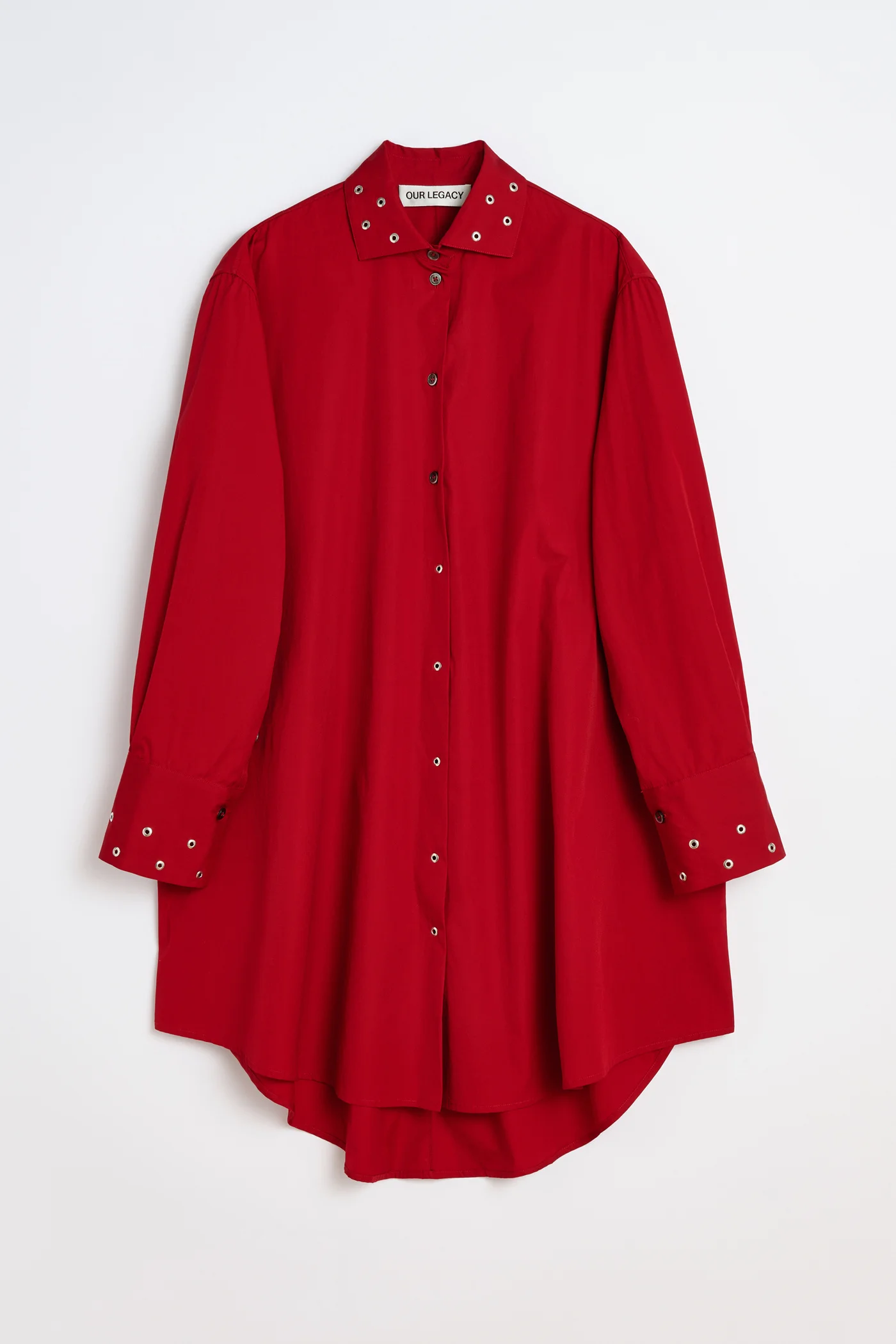 Details · Italian fabric · 100% Cotton · Eyelet details · Cutaway collar · Mother of pearl buttons · Deep vented cuffs · Generous, relaxed fit · W4257FL Description Our Frock Shirt Dress in Lipstick Red Super Poplin. Produced in Italian cotton fabric, the women's Frock Shirt Dress has a generous, relaxed fit and features eyelet details on the collar, front and side plackets, a cutaway collar, mother of pearl buttons, and deep vented cuffs.