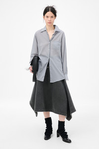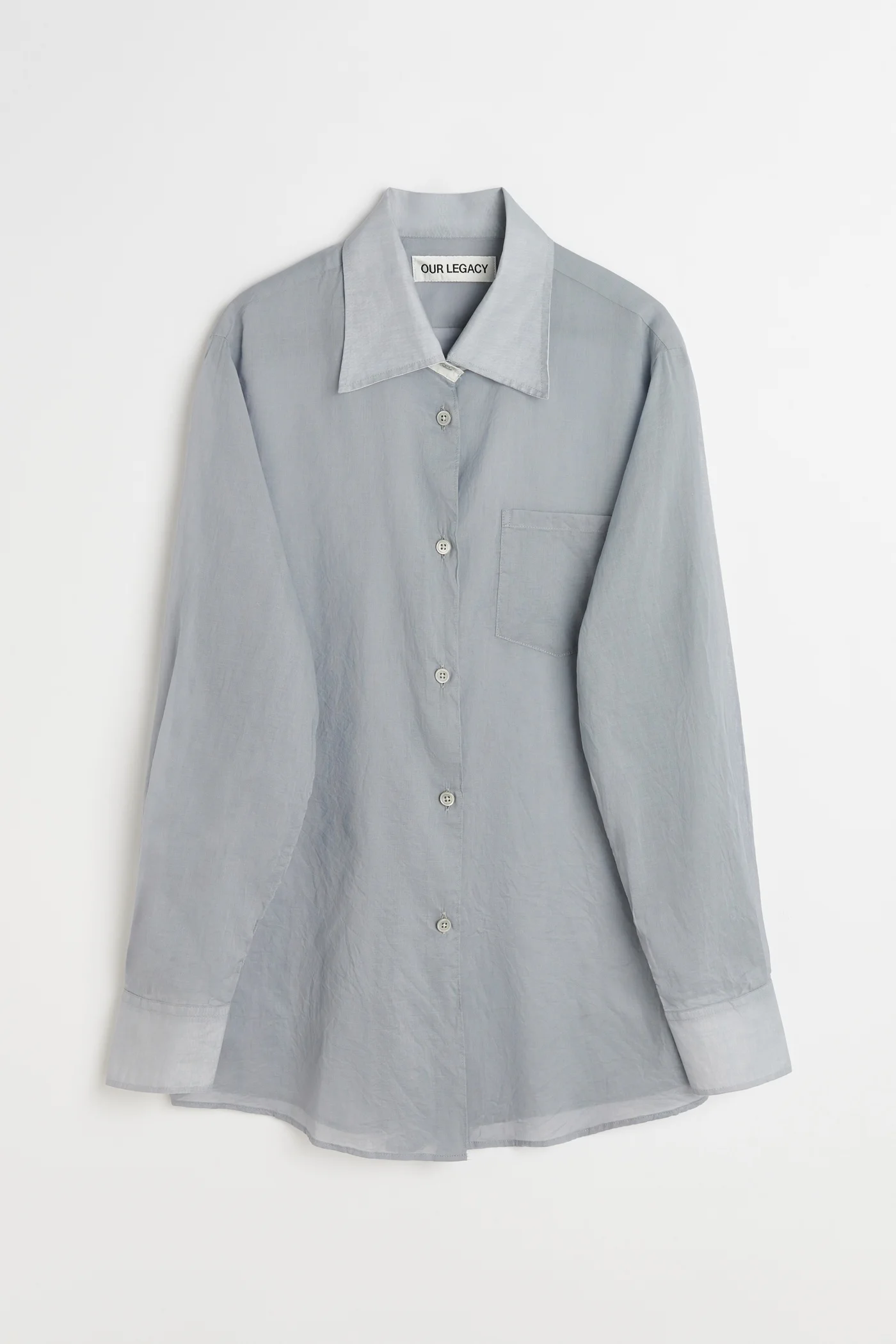 Details · Italian fabric · 100% Cotton · Piece dyed · Delicate fabric · Mother of pearl buttons · Single chest pocket · Curved hem · Lined collar and cuffs · Relaxed, straight fit · W2252SI Description Our Sincere Shirt in Ice Cold Grey Cloudy Cotton. Produced in an Italian fine cotton, the womens Sincere Shirt has a relaxed straight cut and features mother of pearl buttons, a single chest pocket and contrast lined collar and cuffs. This garment is manufactured using a fine and delicate material, carefully sourced for its particular characteristics. The garment shall be shaped by its wearer and naturally distress over time to finish the design process.