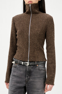 Slim Zip Longsleeve Brown Sparse Buckle Weave