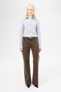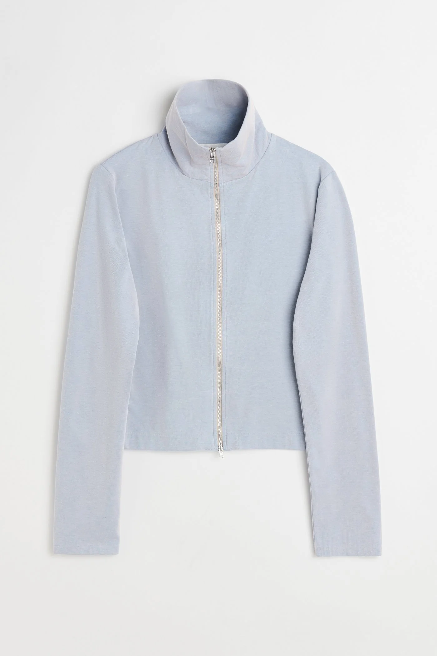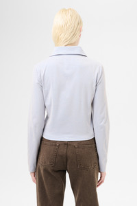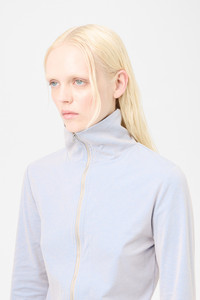 Details · Japanese micro rib jersey · 47% Polyester 27% Lyocell 26% Cotton · Iridescent solaro effect fabric · Lampo two way zip · Funnel neck collar · Flatlock seams · Straight hem · Short boxy fit · W2256SSB Description Our Slim Zip Longsleeve in Solaro Blue Micro Rib. Produced in an iridescent Japanese micro ribbed jersey, the womens Slim Zip Longsleeve has a regular, short boxy fit and features a Lampo two way zip, long sleeves and a straight hem.