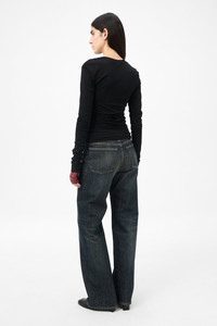 Details · Portuguese jersey · 79% Wool 21% Polyamide · Ruched seam details · Folded hems · Elongated sleeves · Overlocked seams · Slim, gathered fit · W4256SIB Description Our Strain Slim Longsleeve in Intellectual Black Wool Jersey. Produced in Portuguese wool and polyamide jersey, the women's Strain Slim Longsleeve has a slim, gathered fit and features ruched details on the shoulders, sleeves and side seams, folded hems, elongated sleeves and overlocked cuffs.