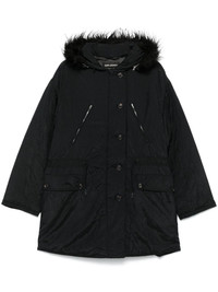 Subtle parka coat Highlights - Black - Crinkled finish - Front zip fastening - Front button fastening - Drawstring hood - Detachable faux fur tim at the hood - Long sleeves - Two zip-fastening chest pockets - Two front flap pockets - Drawstring waist - Full lining - Straight hem Imported Composition Outer: Cattle Horn 100%, Polyamide 58%, Polyester 42% Lining: Viscose 55%, Acetate 45%