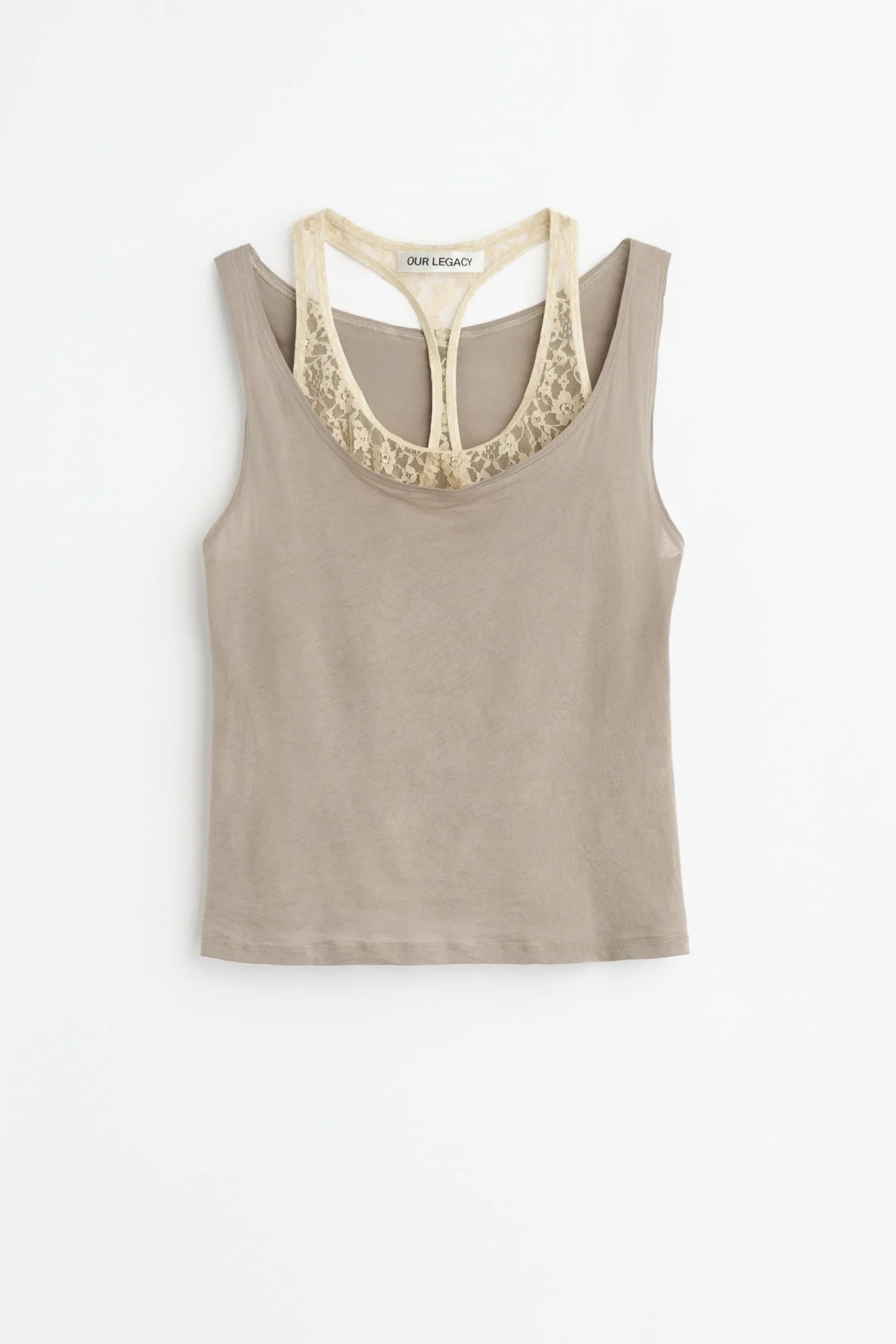 Details · Portuguese fabric · 100% Cotton · Double-layer tank · Lower front neckline outer layer · Classic tank back outer layer · Inner layer in sheer lace · Deep scoop at back armhole · Reversible to wear lace on the outside · Fitted silhouette · W2266SV Description Our Swim Tank in Velvet Sand Airveil Cotton. Produced in a Portuguese Airveil cotton fabric, the Swim Tank has a fitted silhouette and features a double-layer construction with a lower front neckline on the outer layer and a classic tank back. The inner layer is crafted in sheer lace with a deep scoop at the back armhole, and the piece is reversible to wear the lace on the outside.