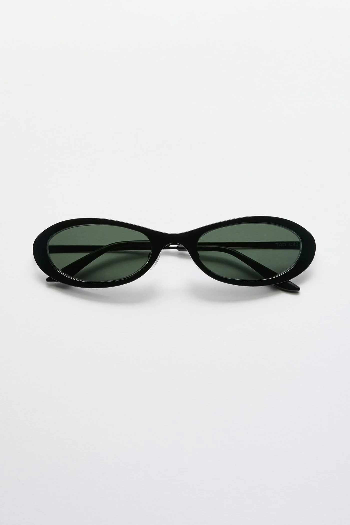 Details · Handmade in Italy · German silver frame · Bronze temples · Dark green lenses from Carl Zeiss vision · Filter category 2 · Anti-scratch coating · Unisex · Travel case · A2258TBL Description Our Tad sunglasses in Obsidian Ruckus. Handcrafted in Italy with a German Silver frame and bronze temples, our unisex eyewear features dark green lenses from Carl Zeiss Vision with filter category 2 protection and anti-scratch coating, and comes with a travel case.