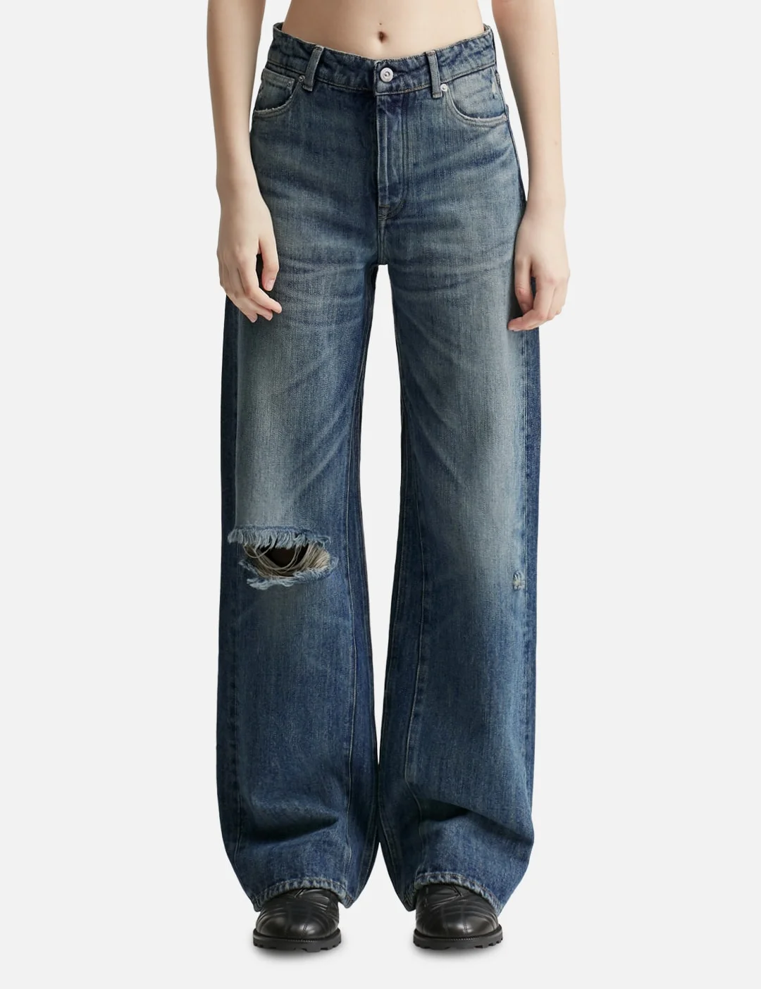 - Our Legacy - Treble Cut - Made with Italian denim - Slouchy, wide leg fit - Rope twill - Indigo dyed - Vintage washed - Button fly - Paneled inseam - OUR LEGACY embossed patch - Five pockets - Damage detail is scattered by hand. Each piece may vary - Color: Road Worn Rope Twill - Material: 64% Cotton, 36% Hemp - See more Jeans and Clothing - Model wears size 26 - Model measures: Height 177cm, Chest 30.5’’/77.5cm, Waist 25.5’’/65cm, Hip 35’’/89cm - Vendor Code: W4255TR