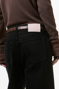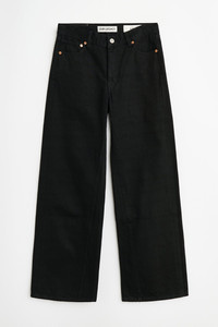 Details · Italian selvedge denim · 100% Cotton · Pigment dyed · Five pockets · Button fly · Paneled inseam · OUR LEGACY embossed patch · Sit above the hip · Slouchy, wide leg fit · W2265TBL Description Our Treble Cut in Black Selvedge. Produced in Italian selvedge denim with pigment dyeing, the women's Treble Cut has a slouchy fit with wide legs and sits above the hip. Features include a button fly, paneled inseam, five pockets and an OUR LEGACY embossed patch. This garment is manufactured from carefully sourced denim fabric. The garment shall be shaped by its wearer and naturally distress over time to finish the design process.