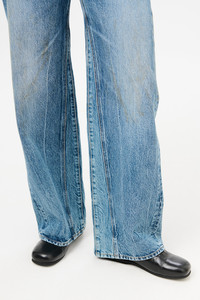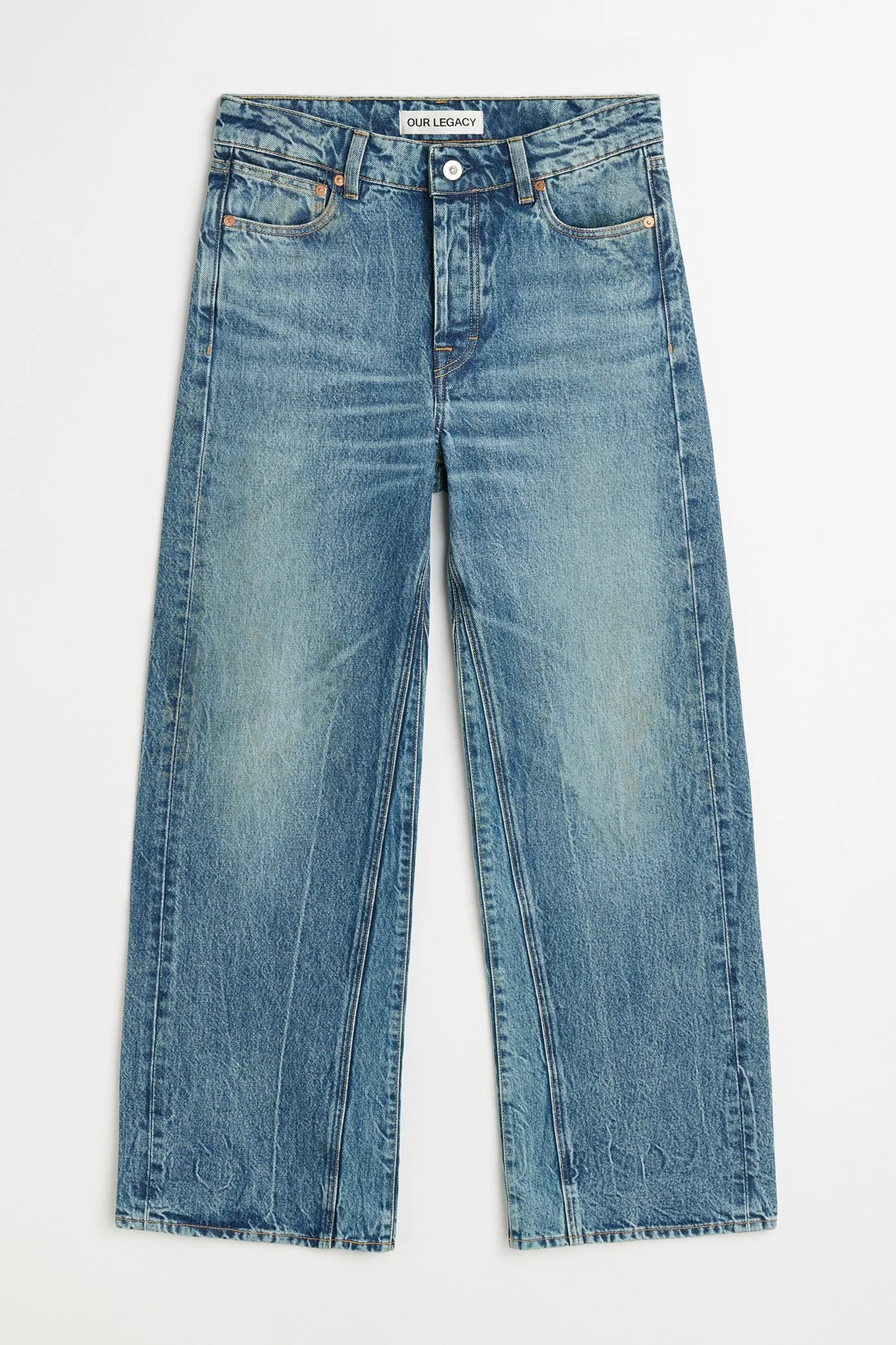 Details · Turkish fabric · 100% Cotton · Indigo dyed · Vintage stain wash · Five pockets · Button fly · Paneled inseam · OUR LEGACY embossed patch · Sit above the hip · Slouchy, wide leg fit · W2255TCD Description Our Treble Cut in Deadline Wash. Produced in a vintage stain washed Turkish denim, the womens Treble Cut jeans sit above the hip and have a slouchy, wide leg fit. The five pocket jeans feature a button fly, a paneled inseam, a natural rubber OUR LEGACY embossed patch. This garment is manufactured from carefully sourced denim fabric. Each garment is unique and has been finished with a hand-made bleach process to achieve the desired effect. The garment shall be shaped by its wearer and naturally distress over time to finish the design process.
