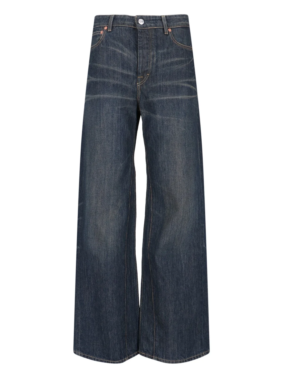 OUR LEGACY "TREBLE CUT" PANTS IN BLUE "CHAIN TWILL" COTTON WITH MID WAIST, BELT LOOPS, BUTTON AND ZIP CLOSURE, FIVE POCKETS, LOGO LABEL AT THE BACK, WIDE LEG. PRODUCT INFO PRODUCT CODE W4255TCCLAY TINT CHAIN TWILL COMPOSITION: 100% COTTON SIZE AND FIT: SOFT FIT MADE IN: PORTUGAL