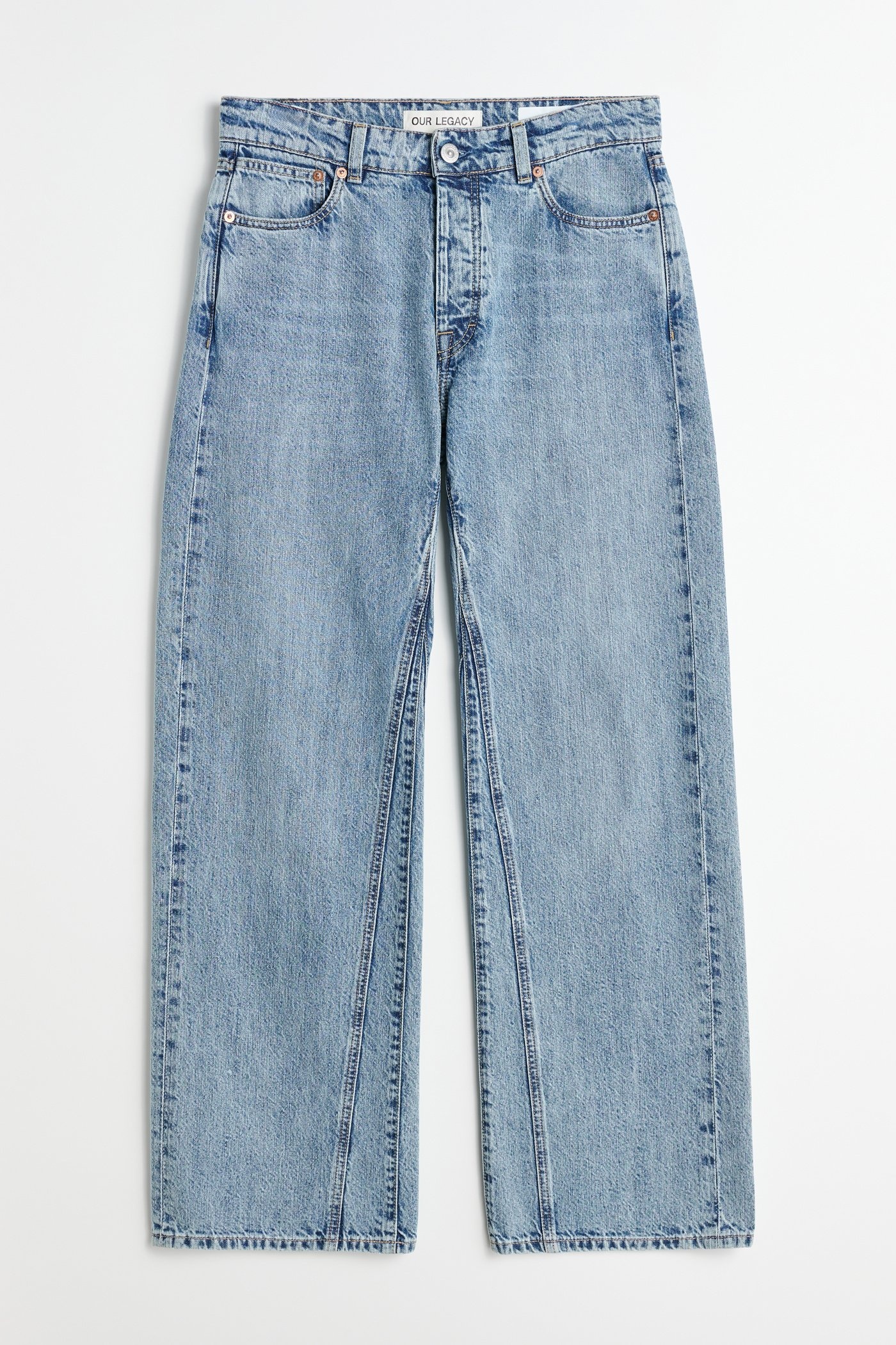 Details · Italian fabric · 100% Cotton · Vintage washed · Five pockets · Button fly · Paneled inseam · OUR LEGACY embossed patch · Sit above the hip · Slouchy, wide leg fit · W2245RS Description Our Treble Cut in Shadow Wash Denim. Produced in a vintage washed Italian denim, the womens Treble Cut jeans sit above the hip and have a slouchy, wide leg fit. The five pocket jeans feature a button fly, a paneled inseam, an OUR LEGACY embossed patch. This garment is manufactured from carefully sourced denim fabric. Each garment is unique and has been finished with a special washing process to achieve the desired vintage effect. The garment shall be shaped by its wearer and naturally distress over time to finish the design process.