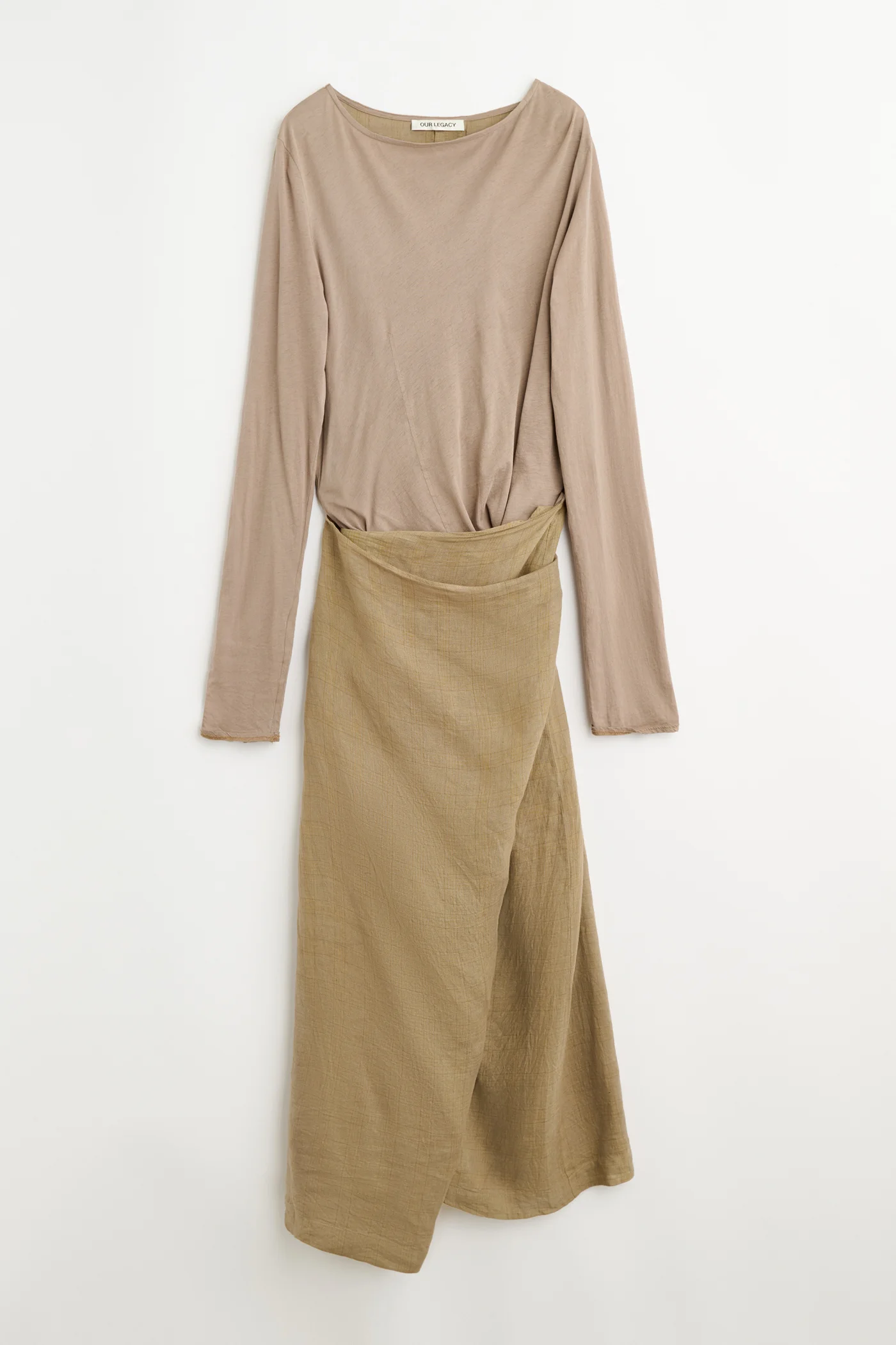 Details · Italian fabric · 100% Linen · Check pattern · Contrast jersey upper · Wrap construction with skirt ties · Boat neckline · Elongated sleeves · Front corset-like darts for shaping · Back vent for movement · Tie at back · Elongated silhouette regular fit on top · Cinched waist when wrapped · W2267TVC Description Our Twisted Dress in Vacay Check Gauze Linen. Produced in an Italian linen gauze with a check pattern, the women's Twisted Dress features a contrast jersey upper, a boat neckline, elongated sleeves, and a wrap skirt with ties to cinch the waist. Detailed with front corset-like darts for shaping, a tie at the back, a back vent for movement, and an elongated silhouette with a regular fit through the top. This garment is manufactured using carefully sourced material with a unique treatment process that will give each garment an individual shade and appearance. This technique could result in some color bleed onto lighter garments or surfaces. The garment shall be shaped by its wearer and naturally distress over time to finish the design process.