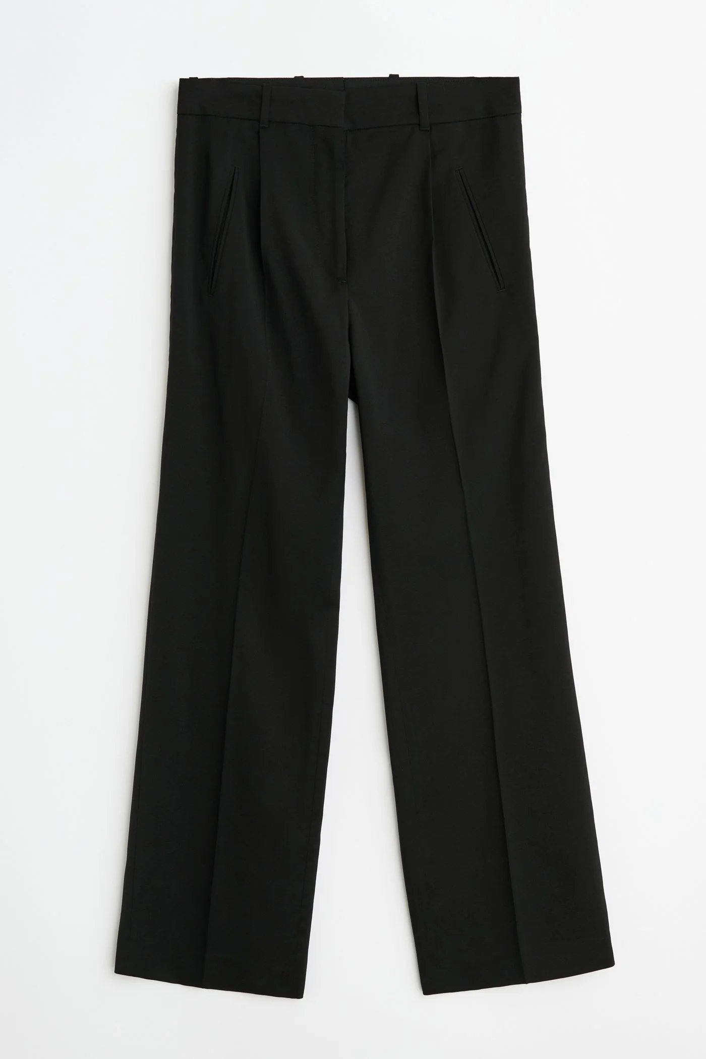 Details · Italian fabric · 100% Virgin Wool · Pre-constructed waistband · Front pleats on both sides · Thin angled jet pockets · Horn buttons · Back welt pocket with triangle buttoning detail · Regular fit, slight bootcut · W2264UB Description Our Universe Trouser in Black Worsted Wool. Produced in Italian virgin wool fabric, the women's Universe Trouser has a regular waist and leg with a slight bootcut and features pleats at front on both sides, thin angled jet pockets, a back welt pocket with triangle buttoning detail, horn buttons and a pre-constructed waistband.