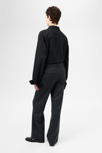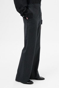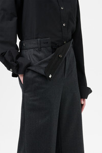 Details · Portuguese fabric · 100% Virgin Wool · Tie closure construction · Pre-constructed inner waistband · Two side pockets · Horn button · Single back pocket · Zip fly · Relaxed wide leg · W2254UP Description Our Unveil Trouser in Premium Charcoal Office Wool. Produced in a Portuguese wool fabric, the womens Unveil Trousers have a relaxed, wide legged fit and feature a pre-constructed inner waistband and a tie closure giving the possibility for the front to be worn open.