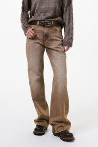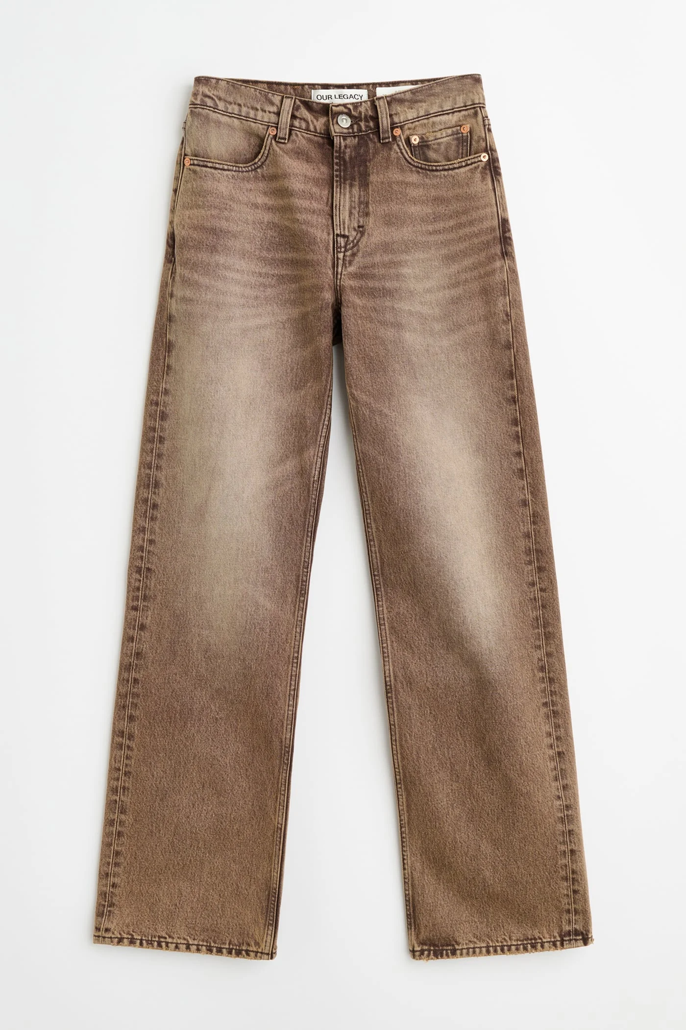 Details · Turkish fabric · 80% Organic Cotton 20% Recycled Cotton · Faded, lived-in wash · Extended leg length · Slight boot cut · Five pockets · Steel rivets · Zip fly · Our Legacy embossed patch · W2265WC Description Our Wata Cut in Clay Breeze Wash. Produced in Turkish denim woven from organic cotton and recycled cotton. Developed on a brown denim base and finished with a richly tinted, faded wash, the recycled yarns introduce subtle variations in texture and tone, reacting differently during washing to create a uniquely lived-in, uneven fade that amplifies the fabric’s character. The Wata Cut has an extended leg length with a slight boot cut and features a faded, lived-in wash, a zip fly, steel rivets, five pockets and an OUR LEGACY embossed patch. This garment is manufactured using carefully sourced material with a unique treatment process that will give each garment an individual shade and appearance. This technique could result in some color bleed onto lighter garments or surfaces. The garment shall be shaped by its wearer and naturally distress over time to finish the design process.