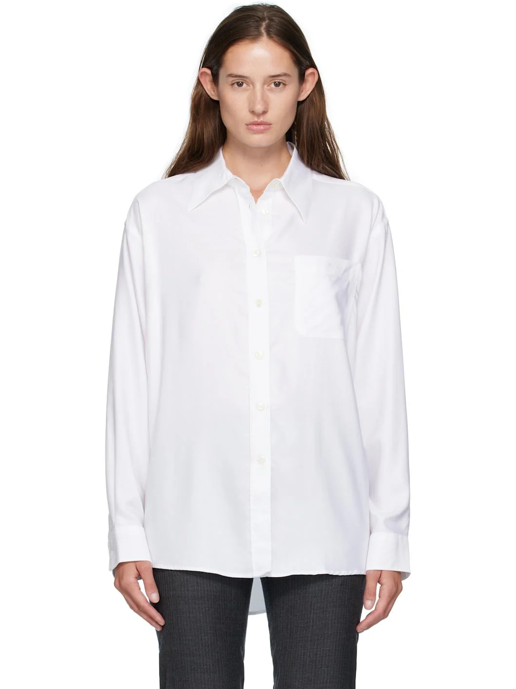 TENCEL™ lyocell oxford cloth shirt. · Spread collar · Button closure · Patch pocket at chest · Curved hem · Dropped shoulders · Buttoned barrel cuffs · Darts at back · Mother-of-pearl hardware Supplier color: Static white liquid oxford 100% lyocell. Made in Portugal 252803F109004