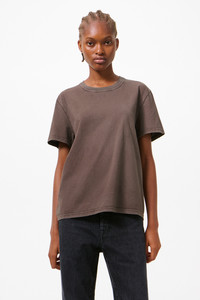 Details · Portuguese jersey · 100% Cotton · Natural pigment dyed · Fine rib collar · Wider neck hole · Topstitch detail at neckline · Straight hem · Regular fit · W2266CT Description Our Classic T-Shirt in Worn Brown Legacy Jersey. Produced in Portuguese cotton jersey, the Classic T-Shirt has a regular fit and features natural pigment dyeing, a fine rib collar, wider neck hole, topstitch detail at neckline and a straight hem. This garment is manufactured using carefully sourced material with a unique treatment process that will give each garment an individual shade and appearance. This technique could result in some color bleed onto lighter garments or surfaces. The garment shall be shaped by its wearer and naturally distress over time to finish the design process.