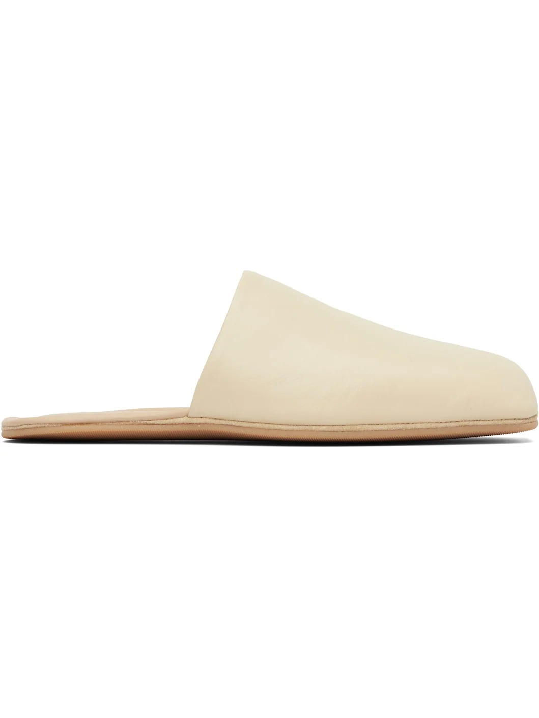 Buffed leather slippers in beige. · Square toe · Treaded rubber sole Part of the OUR LEGACY WORK SHOP, in collaboration with Emporio Armani. Supplier color: Creme leather Upper: leather. Sole: rubber. Made in Portugal 252803F121004