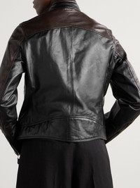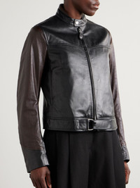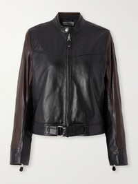 Emporio Armani and Our Legacy’s latest collaboration filters quintessential Italian style through a Nordic lens, where precision meets quiet subversion. This ‘Piccola Trix’ jacket is made from two-tone leather panels and has zipped cuffs and a VELCRO®-fastening tab at the hem. Size & Fit - Fits true to size, take your normal size - Designed for a slightly loose fit - Slightly short in length - Supple, non-stretchy leather - Model is 175cm/ 5'9" and is wearing a FR 36 Model measurements: - Bust: 80cm/ 31.5" - Waist: 60cm/ 23.5" - Hip: 89cm/ 35" Details & Care - Brown and black leather - Zip fastening through front - 100% leather - Dry clean