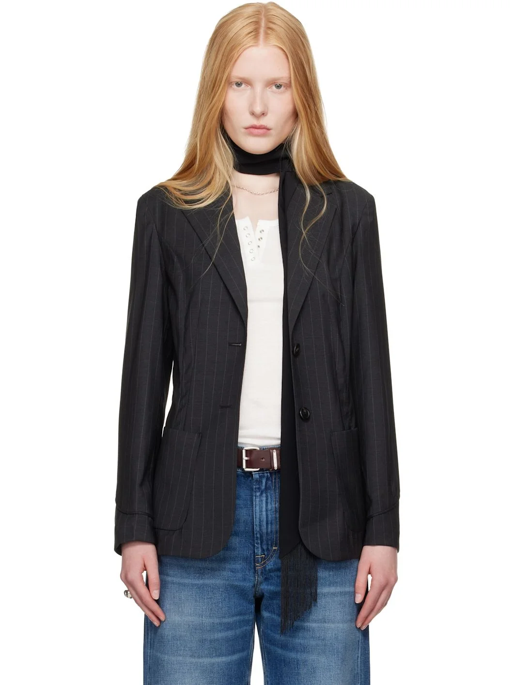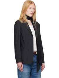 Plain-woven wool blazer. Pinstripes throughout. · Notched lapel · Button closure · Patch pockets · Piping at sleeves and back yoke · Partial satin twill lining · Horn hardware Part of the OUR LEGACY WORK SHOP, in collaboration with Emporio Armani. Supplier color: Linea di gesso wool Body: 100% wool. Lining: 100% viscose. Made in Portugal 252803F057002