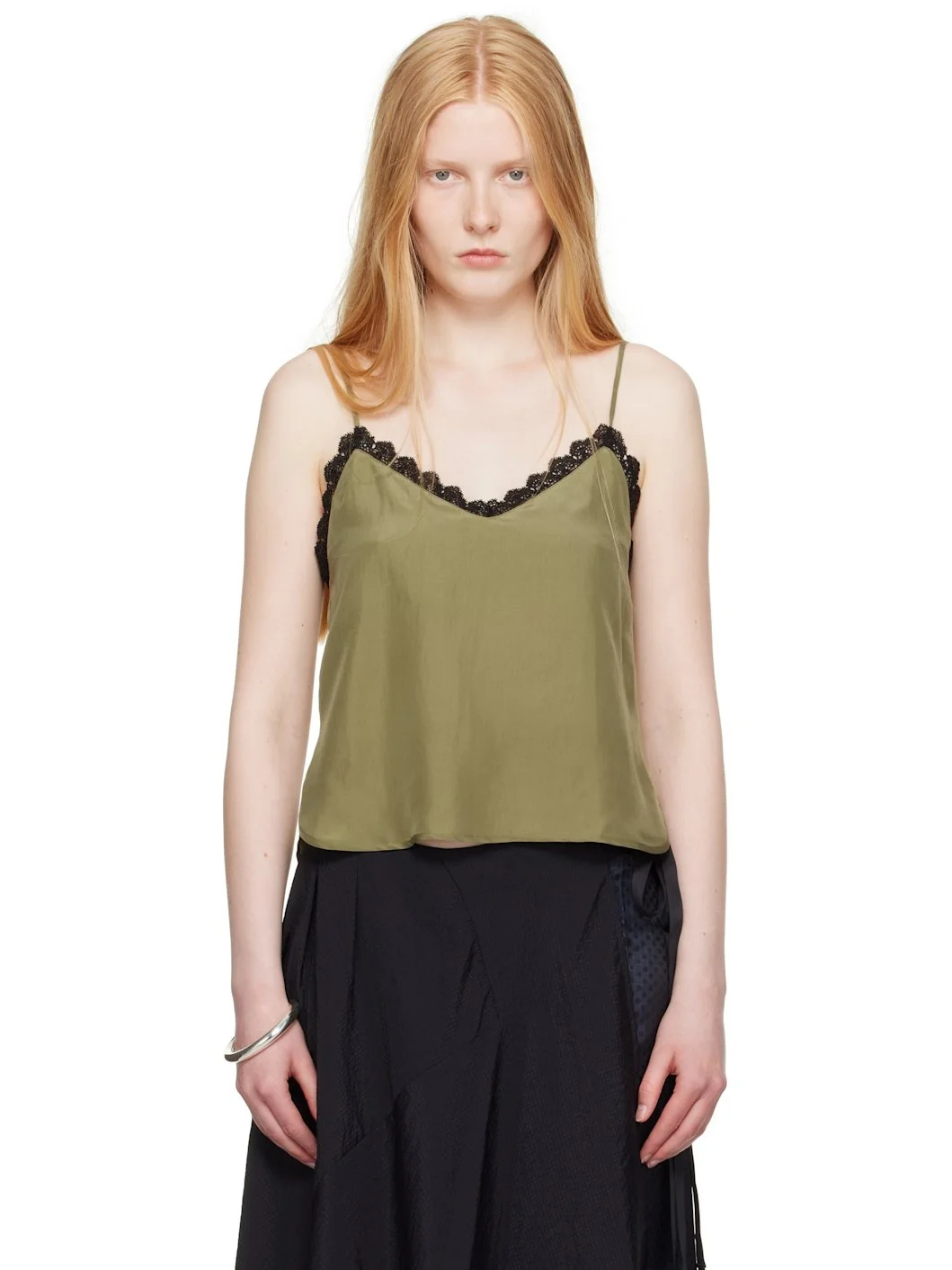 Silk twill camisole. · V-neck · Lace trim with scalloped edge at front and back · Shirttail hem · Fixed spaghetti straps Part of the OUR LEGACY WORK SHOP, in collaboration with Emporio Armani. Supplier color: Giardino silk 100% silk. Made in Portugal 252803F110007