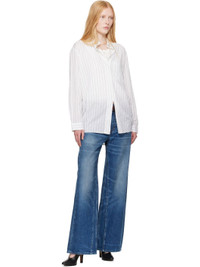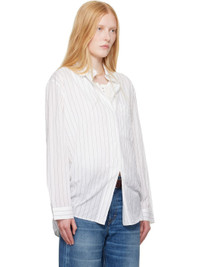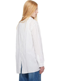 Cotton poplin shirt. Stripes throughout. · Spread collar · Button fastening at collar · Vented placket at front and back · Logo embroidered at patch pocket · Central vent at front and back hem · Adjustable buttoned barrel cuffs · Mother-of-pearl hardware Part of the OUR LEGACY WORK SHOP, in collaboration with Emporio Armani. Supplier color: Pepe nero stripe 100% cotton. Made in Portugal 252803F109015