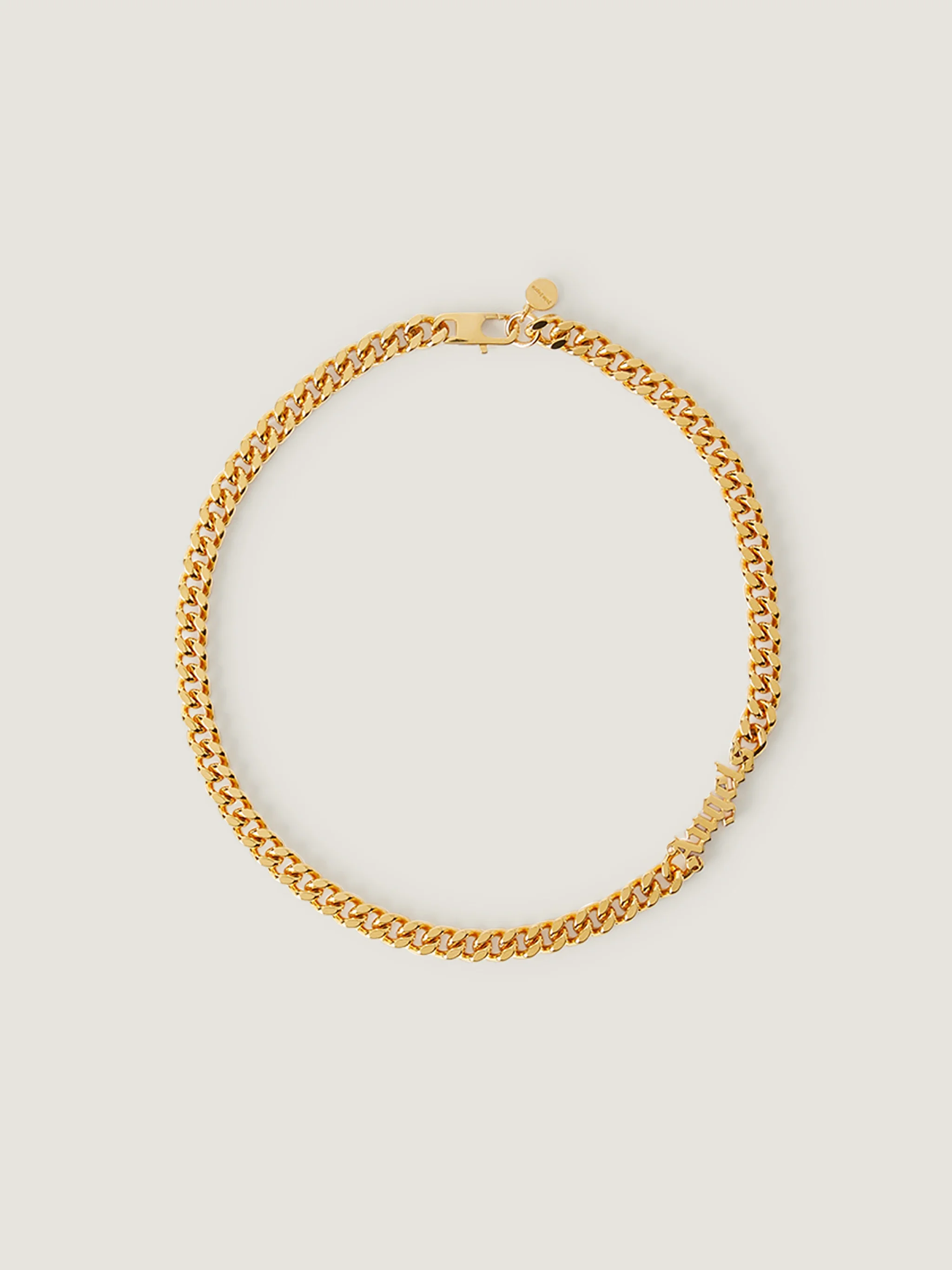 Crafted in a sleek gold-tone finish, the Angels Chain Necklace exudes modern elegance with its polished curb chain and signature logo detail. - Gold-tone finish - Polished curb chain - Signature logo detail - Lobster clasp fastening DETAILS - 100% Brass - Code: PWOB12HF25MAT0017676