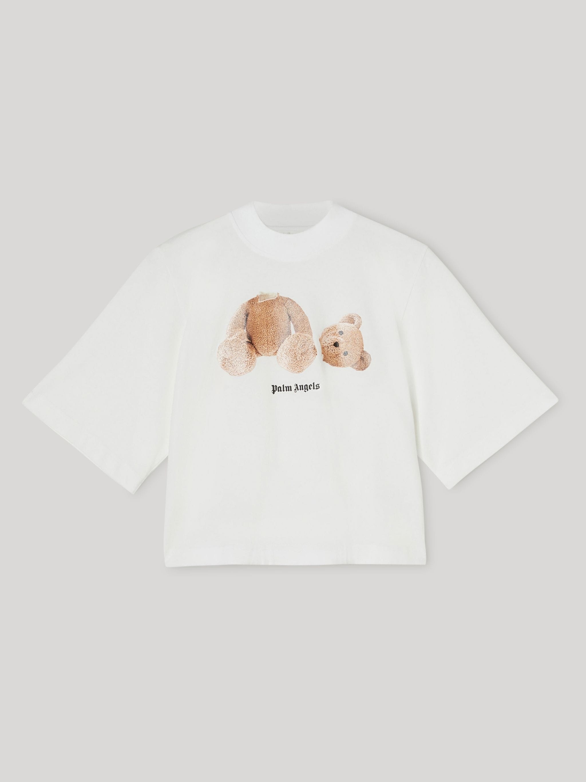 SHORT SLEEVES CROPPED T-SHIRT IN WHITE WITH BEAR GRAPHIC AND BLACK LOGO PRINTED AT FRONT. CREWNECK COLLAR. FABRIC 100% COTTON PRODUCT ID: PWAA020C99JER0110160