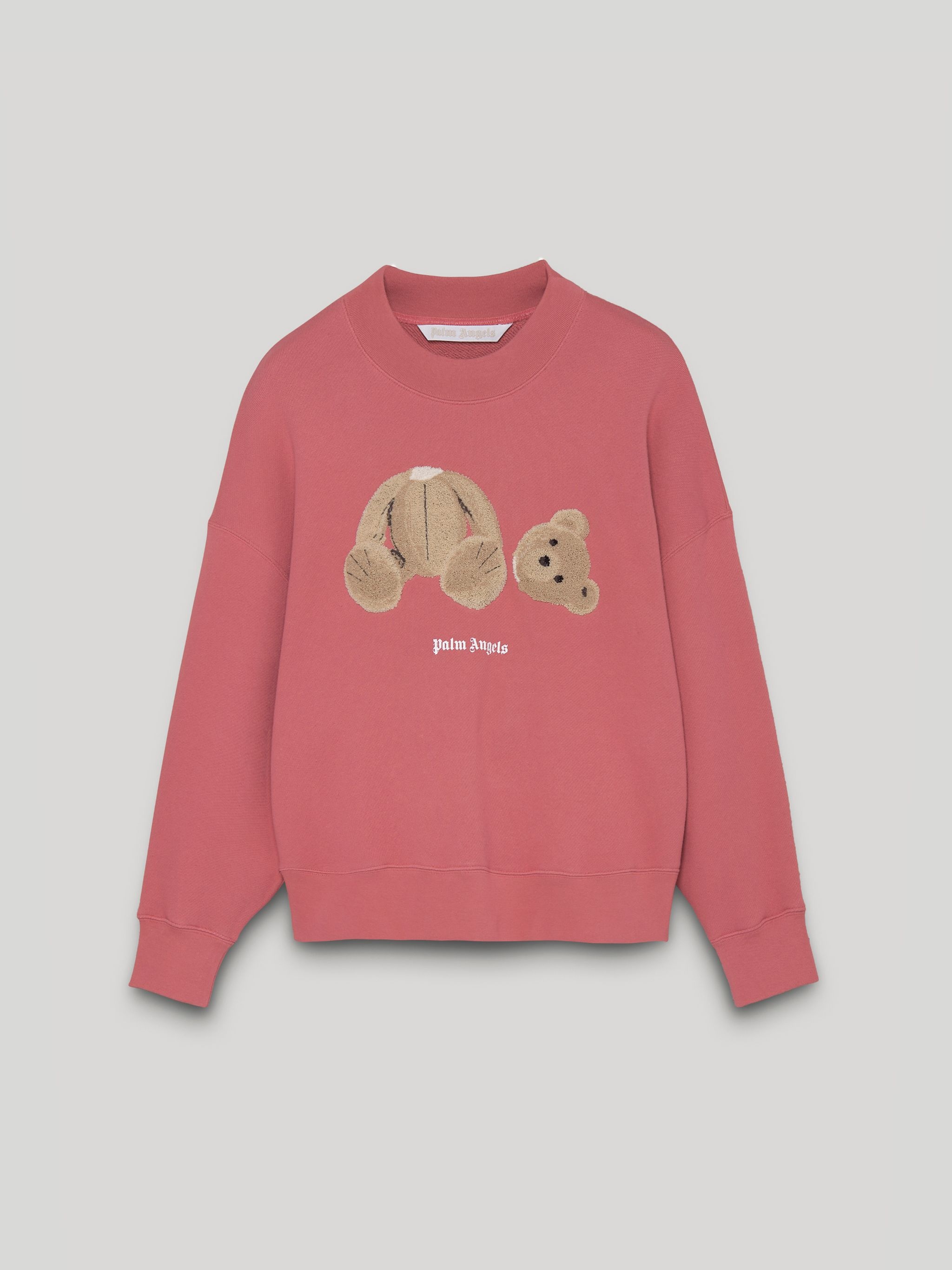 LONG SLEEVES SWEATSHIRT IN BURGUNDY WITH BEAR EMBROIDERED ON FRONT. "PALM ANGELS" LOGO PRINTED IN WHITE AT FRONT. RIB KNIT CUFFS AND HEM. MODEL IRENE WEARS SIZE S HEIGHT: 5'.9" (175 CM) BUST: 31" (78 CM) WAIST: 23" (59 CM) HIPS: 35" (88 CM) PRODUCT ID: PWBA017F21FLE0032860
