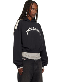 French terry hoodie. · Logo printed at chest · Rib-knit hem and cuffs · Cropped hem · Striped knit trim at dropped shoulders Supplier color: Black/Off white Body: 100% cotton. Trim 1: 95% cotton, 5% elastane. Trim 2: 100% polyester. Made in Portugal 252695F097003