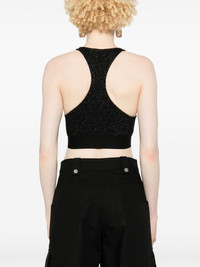 lurex crop top Highlights - Black - Knitted construction - Lurex detailing - Crew neck - Sleeveless - Racerback - Elasticated logo waistband - Cropped Made in Italy Composition Viscose 37%, Wool 25%, Polyamide 20%, Polyester 9%, Metal 5%, Cashmere 4% SIZE & FIT Model measurements Height 5 ft 9 in(1.75 m) Bust/Chest 34.64 in(88 cm) Hips 36.61 in(93 cm) Waist 26.37 in(67 cm) FittingInformation Designed for a close fit throughout Cropped in length Made with a midweight knit, this piece offers some stretch This piece fits true to size – take your usual size