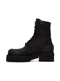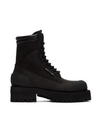 Ankle-high suede boots in black. Rubberized trim throughout. · Lace-up closure · Logo flag at padded tongue · Buffed leather trim at padded collar · Logo flag at outer side · Stacked foam rubber platform midsole · Treaded rubber outsole · Platform: 1.25 in · Heel: 1.75 in Supplier color: Black/No color Upper: leather. Sole: rubber. Made in Italy 222695F113000