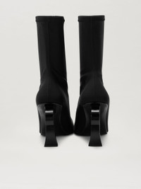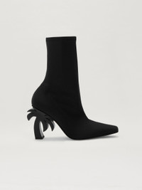 BLACK POINTED BOOTS WITH BLACK PALM HEEL DETAIL. MATERIAL 100% POLYESTER SOLE 100% RUBBER HEELS: 3.7" (95 MM) PRODUCT ID: PWID005F22FAB0011010