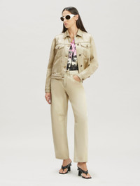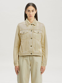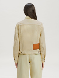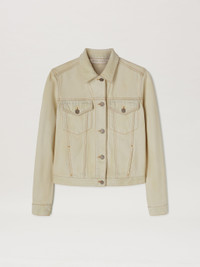 BULL LOOSE DENIM JACKET IN OFF WHITE WITH BROWN SEAMS DETAIL. SPREAD COLLAR AND TWO POCKETS AT FRONT. BROWN LEATHER LABEL AT BACK FEATURING "PALM ANGELS" LOGO EMBOSSED. FABRIC 100% COTTON - DETAIL 100% LEATHER MODEL IVANA WEARS SIZE S HEIGHT: 5’9" (179 CM) CHEST: 33" (85 CM) WAIST: 24" (61 CM) HIPS: 34" (87 CM) PRODUCT ID: PWYE031S23DEN0010360