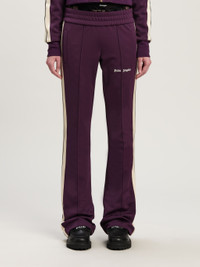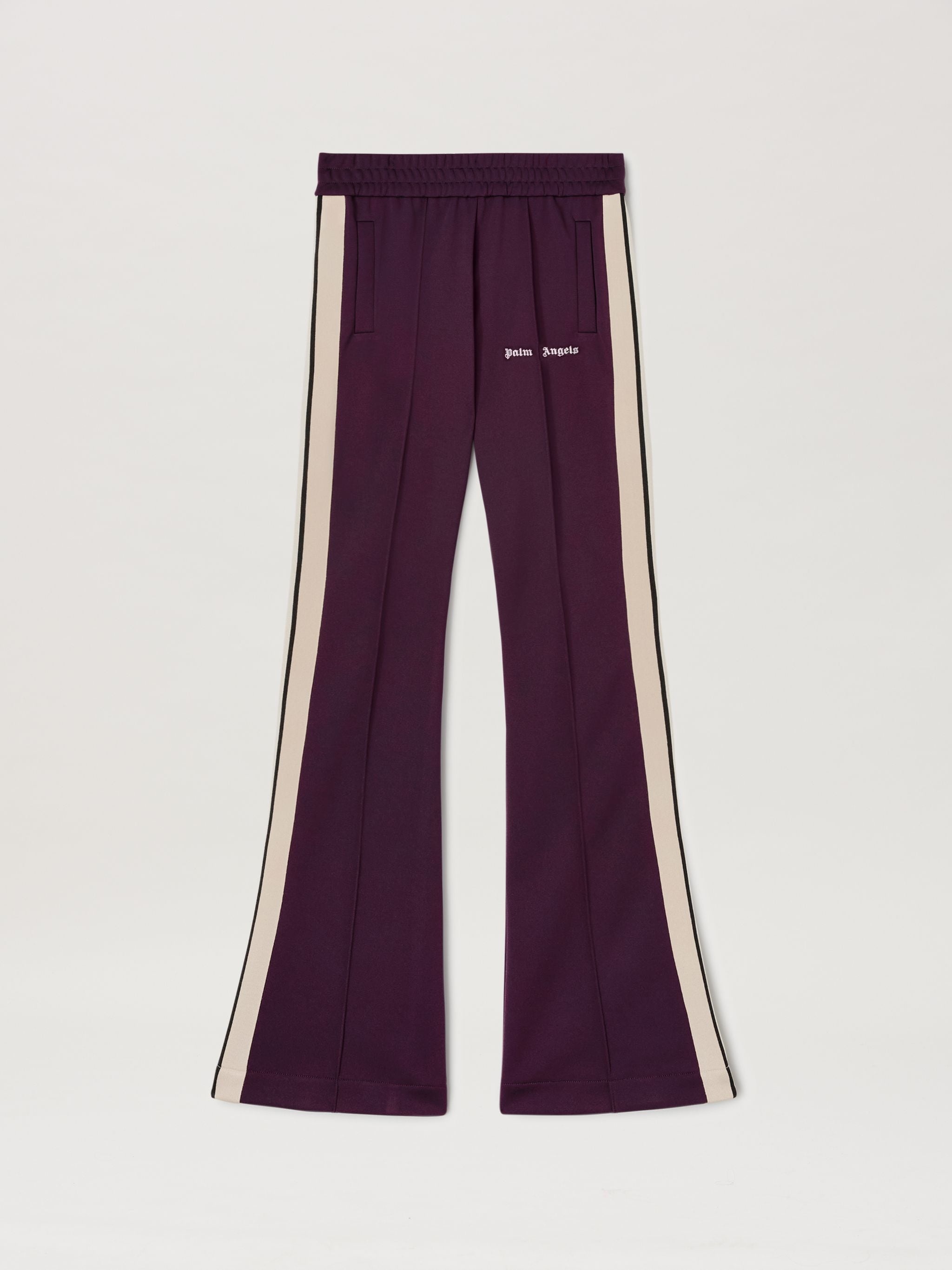 Revised proportions give a complete update to the classic tracksuit. Women's plum color tracksuit pants with slim fit and flair legs, ecru bands on the side, and logo Palm Angels embroidered in white on front. Mingzhu wears size S Height: 5' 10" (176 cm) Bust: 31" (78 cm) Waist: 23" (61 cm) Hips: 35" (88 cm) PRODUCT ID: PWCJ019F24FAB0012903