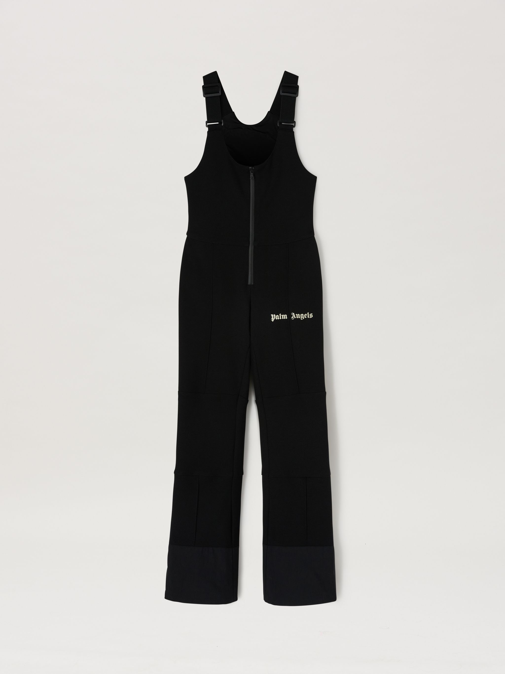 LONG TRACK SKI JUMPSUIT IN BLACK FEATURING WHITE AND BLACK STRIPES AT SIDE AND WHITE "PALM ANGELS" LOGO PRINTED AT FRONT. ZIP OPENING AT FRONT AND AT THE ANKLES. ADJUSTABLE BRACKETS. FABRIC 91% POLYAMIDE 9% ELASTAN - LINING 100% POLYESTER MODEL IVANA WEARS SIZE S HEIGHT: 5’9" (179 CM) CHEST: 33” (85 CM) WAIST: 24” (61 CM) HIPS: 34” (87 CM) PRODUCT ID: PWKS001S23FAB0011001