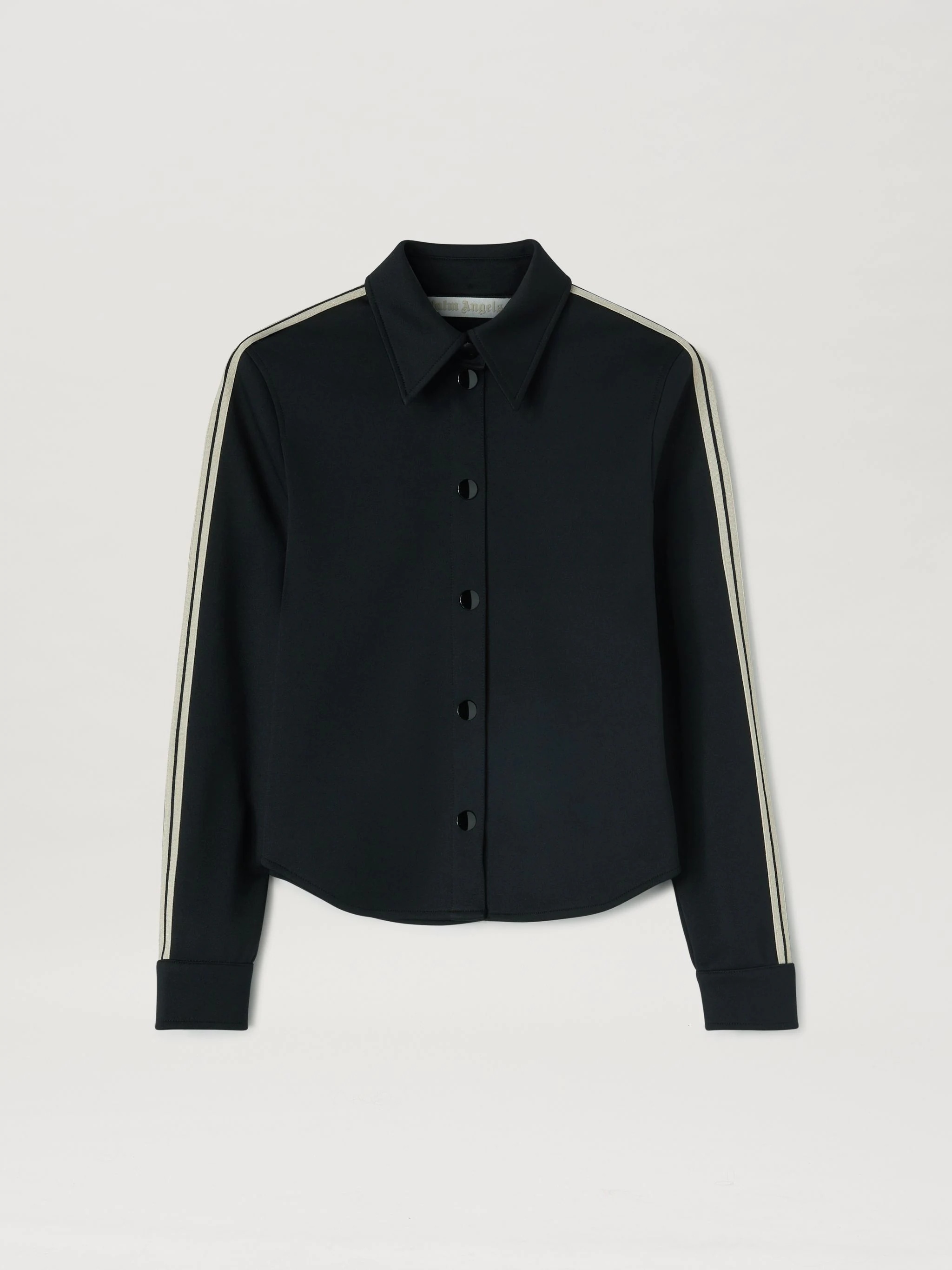 FITTED TRACK SHIRT IN BLACK FEATURING WHITE STRIPES AT SLEEVES. BUTTON CLOSURE. FABRIC 100% POLYESTER - DETAIL 100% POLYESTER MODEL LARISSA WEARS SIZE S HEIGHT: 5’8” (179 CM) CHEST: 31.8” (81 CM) WAIST: 23.6” (60 CM) HIPS: 35” (89 CM) PRODUCT ID: PWGA089F22FAB0011001