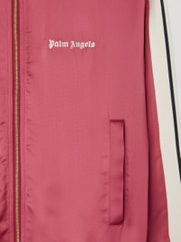 Silky effects and sophisticated silhouettes elevate our icon item to the next level. Women's fluid tracksuit bomber jacket in cherry red satin, with white ribbed cuffs, collar and hem, side bands and Palm Angels logo embroidered in white on front. DETAIL 100% POLYESTER - EMBROIDERY 100% POLYESTER - FABRIC 100% VISCOSE - RIB DETAIL 13% POLYAMIDE 18% COTTON 2% ELASTAN 67% VISCOSE PRODUCT ID: PWBD025F24FAB0012703