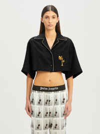 Cropped Linen Bowling Shirt