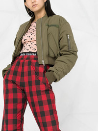 cropped logo-patch bomber jacket Don’t let the cropped design of this Palm Angels bomber jacket fool you. With a multi-pocket design and a chest logo patch, it surely won’t fall short of your high expectations. Looks can be deceiving. Made in Italy Composition Outer: Polyester 100%, Cotton 63%, Polyamide 37% Lining: Viscose 100%, Cotton 100%, Polyester 100% SIZE & FIT Model measurements Height 5 ft 10 in(1.78 m) Bust/Chest 33.07 in(84 cm) Hips 33.07 in(84 cm) Waist 24.4 in(62 cm) FittingInformation This piece fits true to size. We recommend you get your regular size Cut for a loose fit Made with a mid-weight non-stretch fabric Washing instructions Machine Wash