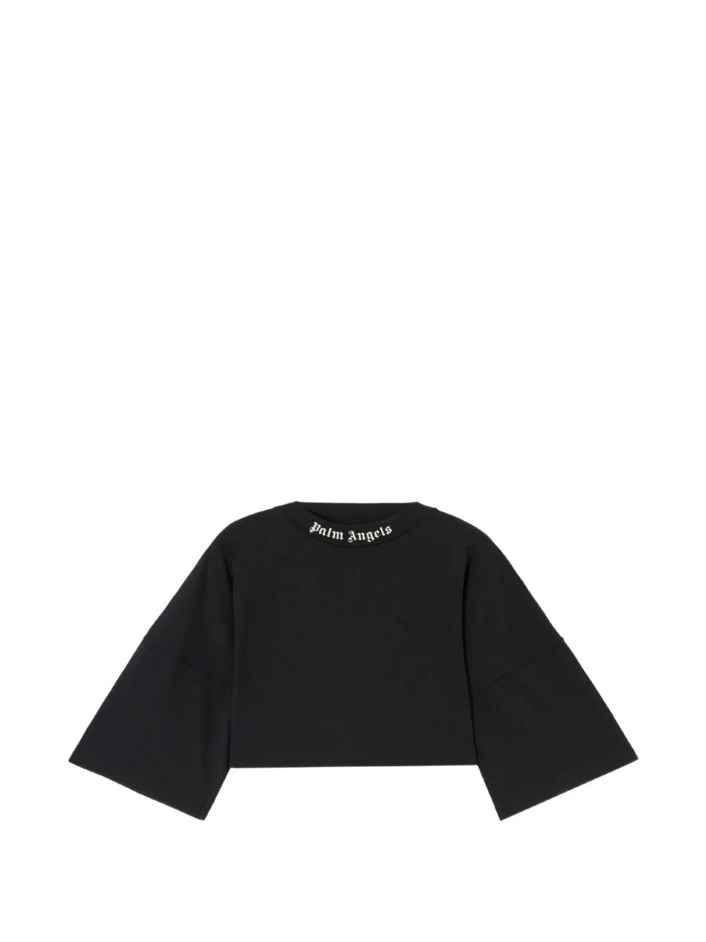 cropped logo T-shirt Highlights - Black - Ribbed crew-neck - Cropped - Curved logo - Cotton Imported Composition Cotton 100% Washing instructions Read Manufacturer Guidelines
