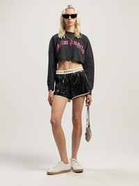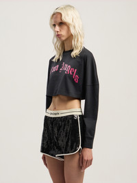 The Curved Logo Crop Long Sleeve embodies a blend of skate culture and high-fashion aesthetics. Crafted with a focus on bold expression and streetwise attitude, this piece stands out with its unique silhouette. - Classic crew neckline for a timeless appeal - Long sleeves offer versatile styling options - Distinctive front logo print adds iconic flair - Rear cropped construction for a modern edge - Soft interior finish ensures comfort and wearability - Refined hem detailing completes the look DETAILS - 100% Cotton, Rib detail: 100% Cotton - Code: PWAB023F25JER0021032
