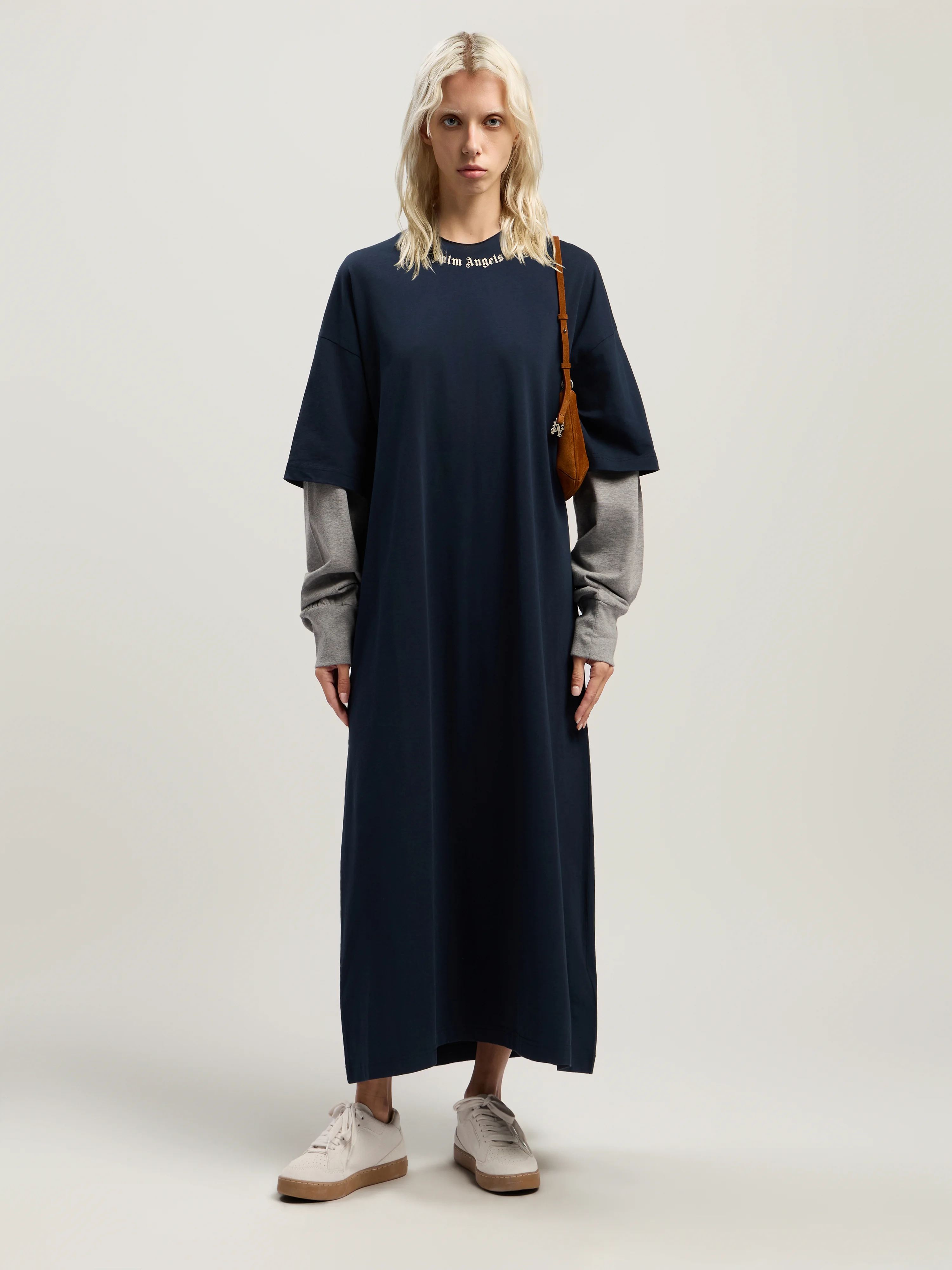 This layered dress combines streetwear edge with a refined silhouette, featuring a signature curved logo for a bold statement. - Layered long sleeve construction - Signature curved logo on neckline and back - Relaxed, flowing silhouette - Soft, comfortable fabric - Mid-length hem - Designed for versatile wear DETAILS - 100% Cotton, Rib detail: 100% Cotton - Code: PWDE005F25JER0014903