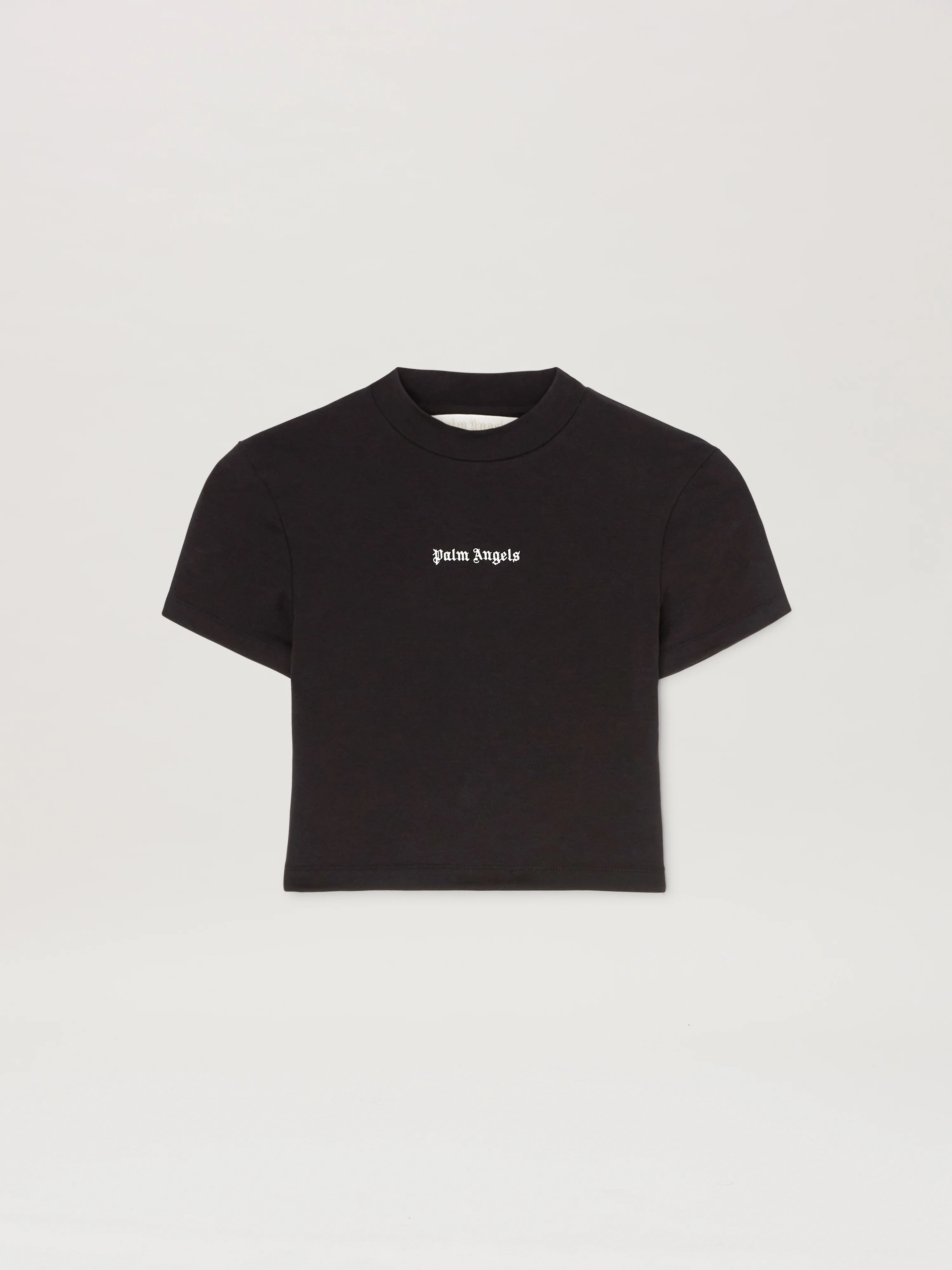 Sporty and feminine the Mini Tee is a new classic. Women's cropped black T-shirt with slim fit and logo embroidered in white on the front. RENDA WEARS SIZE S HEIGHT: 5’ 10” (179 CM) BUST: 30” (77 CM) WAIST: 23” (60 CM) HIPS: 33” (85 CM) PRODUCT ID: PWAA074C99JER0011003