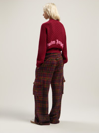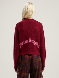 Wool-blend ribbed sweater with a curved logo design, featuring intricate knit patterns and a refined silhouette. - Ribbed crew neckline - Long sleeves with detailed knit pattern - Curved logo design on back panel - Structured hem for a clean finish - Refined wool-blend construction DETAILS - 50% Acrylic 50% Wool, Fabric: 40% Wool extrafine merino 30% Viscose 20% Polyamide 10% Cashemere - Code: PWHE077F25KNI0012830