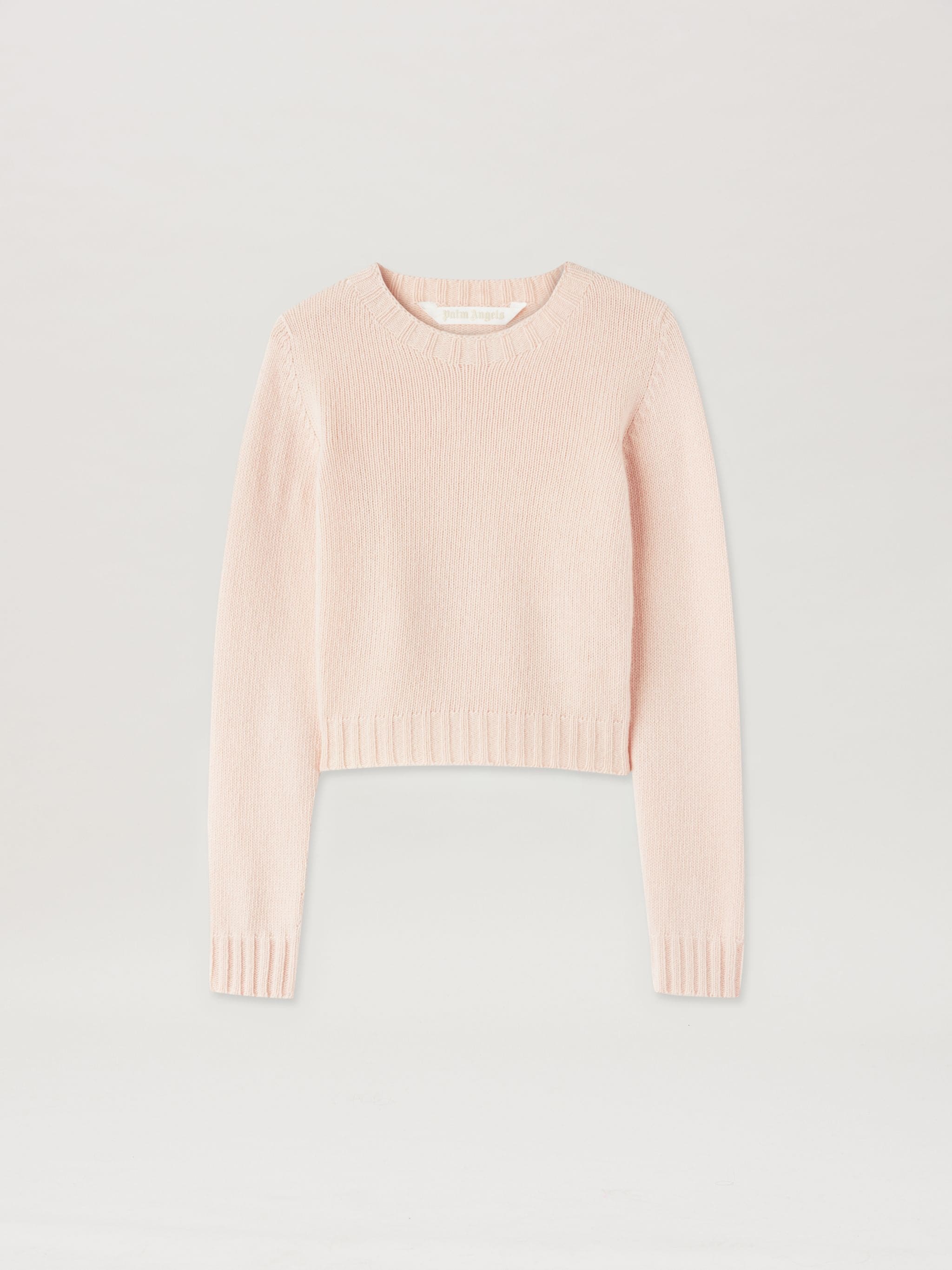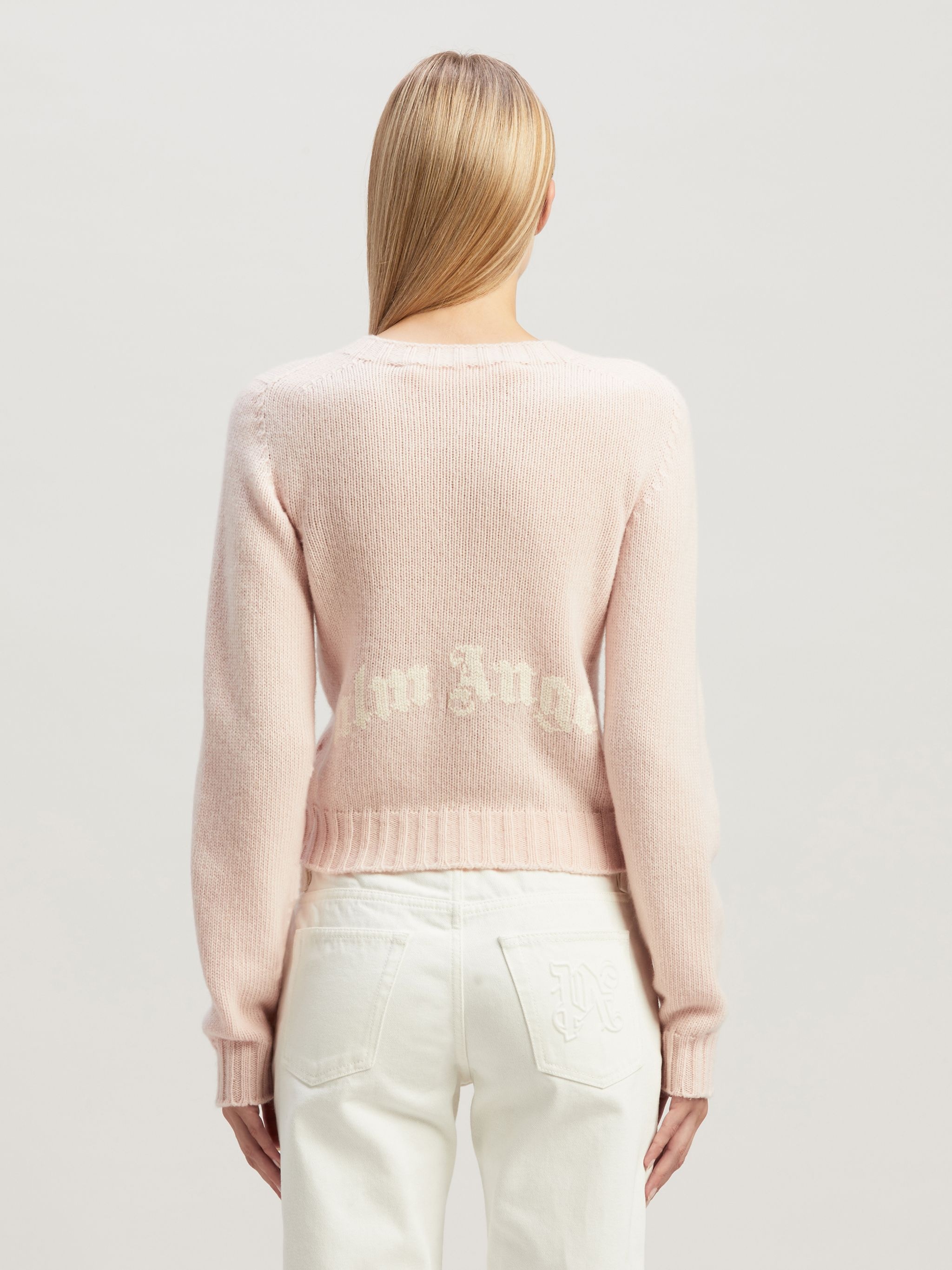 A street and chic take on knit. Women's pink crew-neck knit sweater with short waist, ribbed cuffs, collar and hem and with Palm Angels curved logo embroidered in white on back. Ebba wears size 40 Height: 5' 10" (178 cm) Bust: 31" (79 cm) Waist: 23" (60 cm) Hips: 35" (89 cm) PRODUCT ID: PWHE051C99KNI0013001