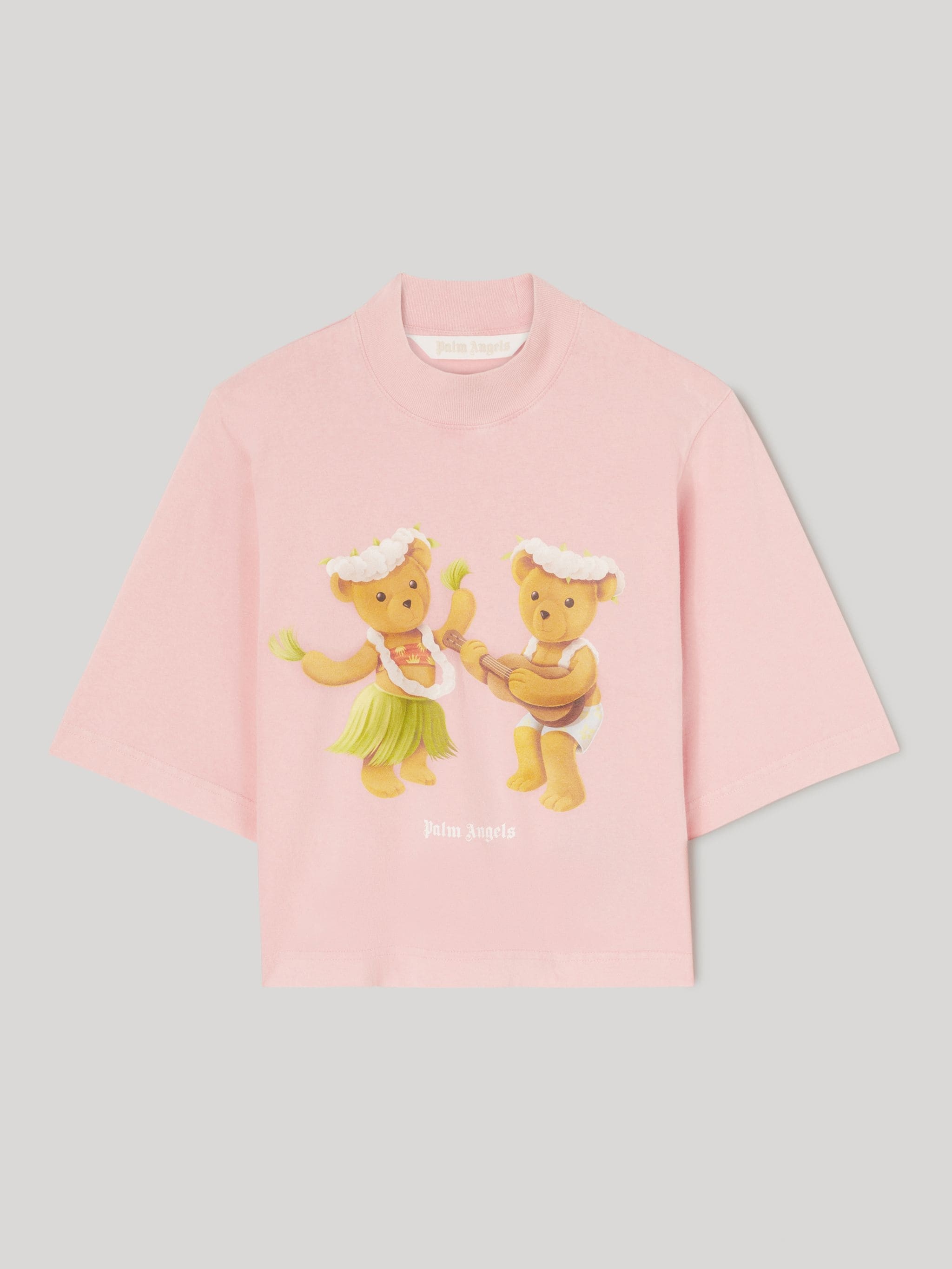 SHORT SLEEVES CROPPED T-SHIRT IN FUCHSIA. DANCING BEAR GRAPHIC PRINTED AT FRONT. "PALM ANGELS" LOGO PRINTED IN WHITE AT FRONT. FABRIC 100% COTTON MODEL ESIN WEARS SIZE S HEIGHT: 5'8 (178 CM) BUST: 33" (84 CM) WAIST: 24" (61 CM) HIPS: 35" (89 CM) PRODUCT ID: PWAA020S22JER0036860