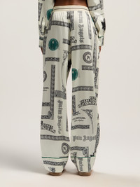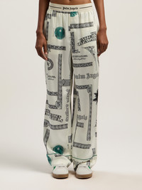 Silk-blend wide-leg pajama pants featuring a bold dollar print motif and elastic waistband. - Silk-blend construction - Wide-leg silhouette - Elastic waistband with logo detail - All-over dollar print motif - Relaxed fit - Signature countercultural design DETAILS - 100% Acetate, Detail: 91% Polyester 9% Elastan, Fabric: 100% Polyester - Code: PWCA15FF25FAB0020B10