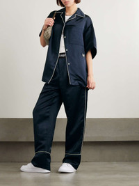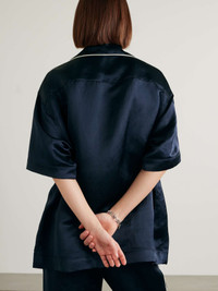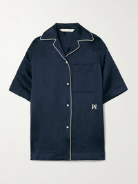 EDITORS'NOTES Palm Angels' shirt is inspired by bowling styles from the '50s. It's cut for a loose fit from linen-blend and embroidered with the 'PA' logo at the chest. Wear yours with baggy denim, sneakers and some oversized shades. SIZE & FIT - Fits true to size, take your normal size - Designed for a relaxed fit - Mid-weight, non-stretchy fabric - Model is 177cm/ 5'10" and is wearing an IT 40 DETAILS & CARE - Navy and white linen-blend - Button fastenings through front - 56% linen, 44% viscose; trim1: 100% cotton; trim2: 100% polyester - Dry clean
