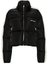 embroidered-logo jacket Highlights - Black - Feather down - Padded design - Quilted - Embroidered logo at the chest - Front zip fastening - High neck - Long sleeves - Side stripe detailing - Elasticated cuffs - Two side zip-fastening pockets - Internal slip pocket - Full lining - Straight hem Imported Composition Lining: Polyamide 100%, Polyester 100%, Down 90%, Feather 10% Outer: Polyamide 100% SIZE & FIT Model measurements Height 5 ft 11 in(1.8 m) Bust/Chest 32.67 in(83 cm) Hips 35.03 in(89 cm) Waist 25.19 in(64 cm)